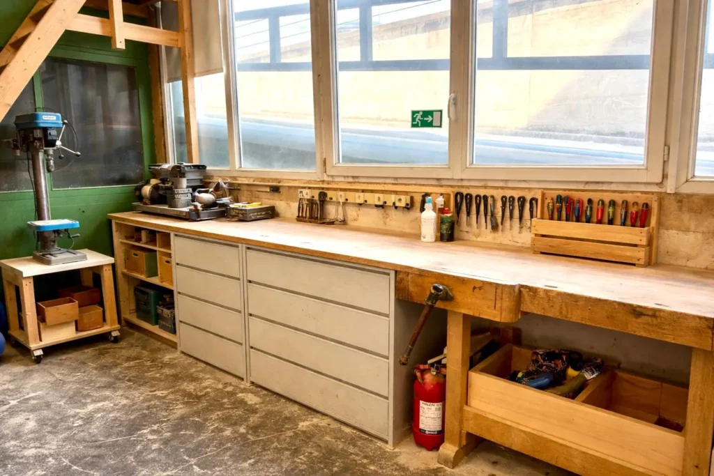Nous disposons de machines, d’un espace de fabrication sur mesure et d’un bureau. Cette configuration nous permet de suivre votre demande, de préparer les pièces et de travailler les ajustements liés à votre projet, tout en restant disponibles pour répondre à vos questions et valider les points importants.